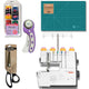 Bernette B48 Funlock Coverstitch Overlock Serger Bundle with Scissors, Rotary Cutter, Threads Bundle and Self Healing Foldable Cutting Mat