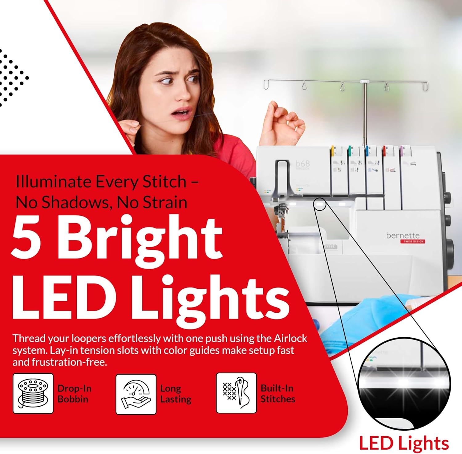 • Bright LED lighting and color-coded threading