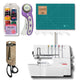 This exclusive bundle comes with everything you need to get started right away — the bernette b68 AIRLOCK Combo Serger, Maxi-Lock Thread Set, rotary cutter, scissors, A3 cutting mat, presser foot, and maintenance tools.
