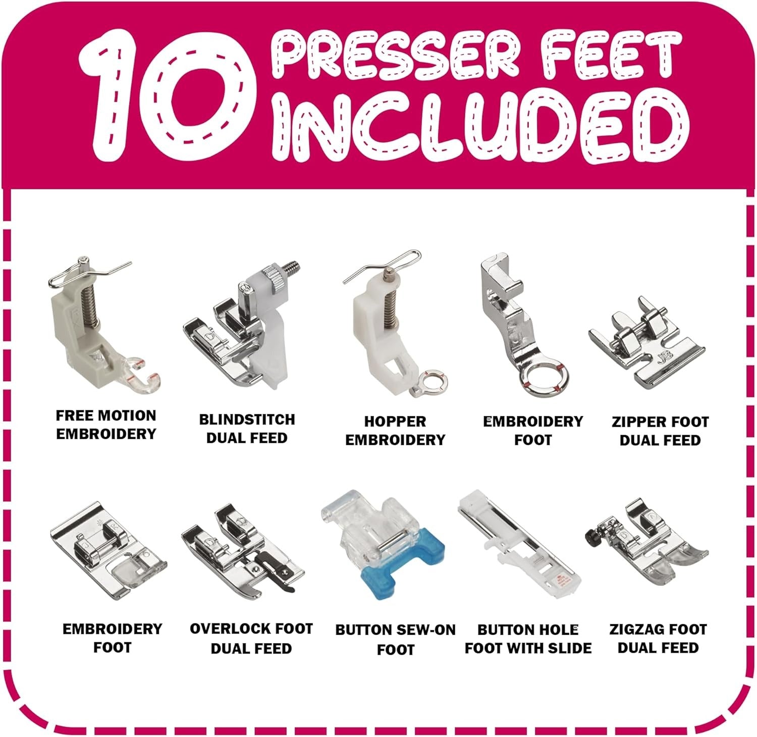 Can it handle thick or layered fabrics? Yes, the adjustable presser foot pressure and dual feed allow for smooth stitching through denim, leather, or quilt layers.