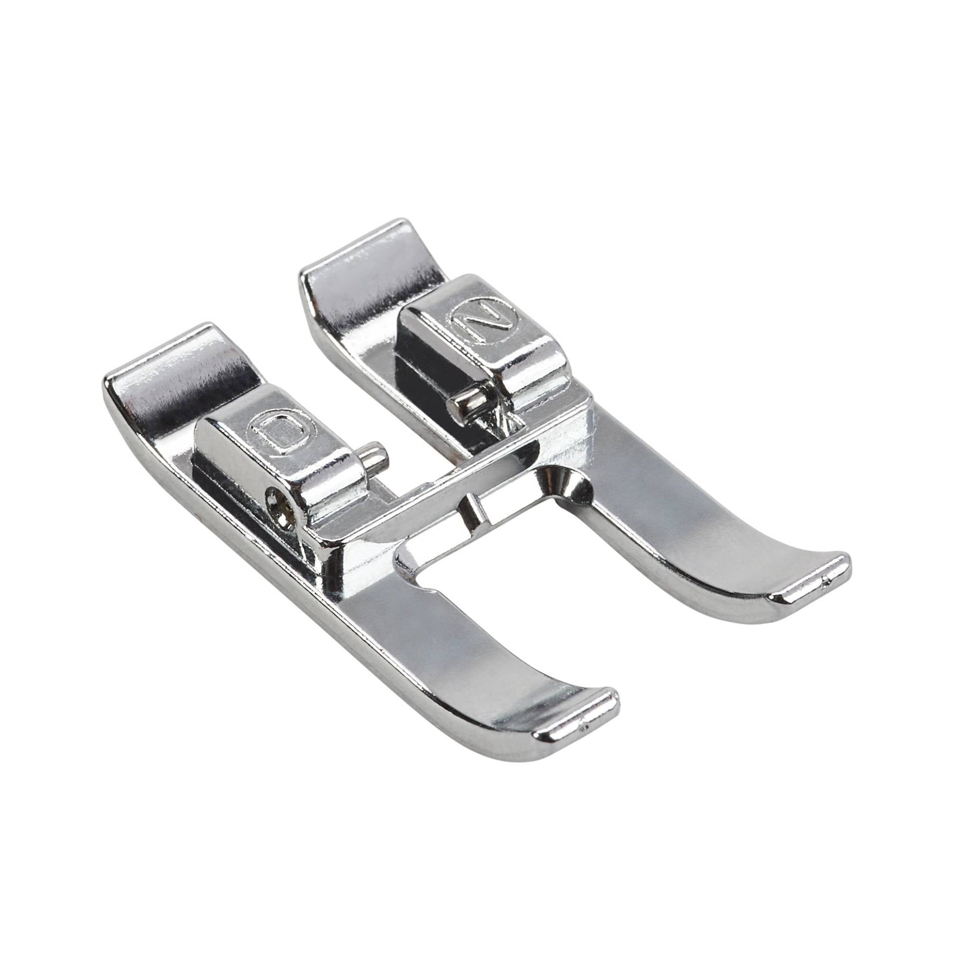 The genuine bernette Open Toe foot for Dual Feed is provided with a recess on the back side of the presser foot to activate the integrated Dual Feed. This allows an even feed of several fabric layers.
