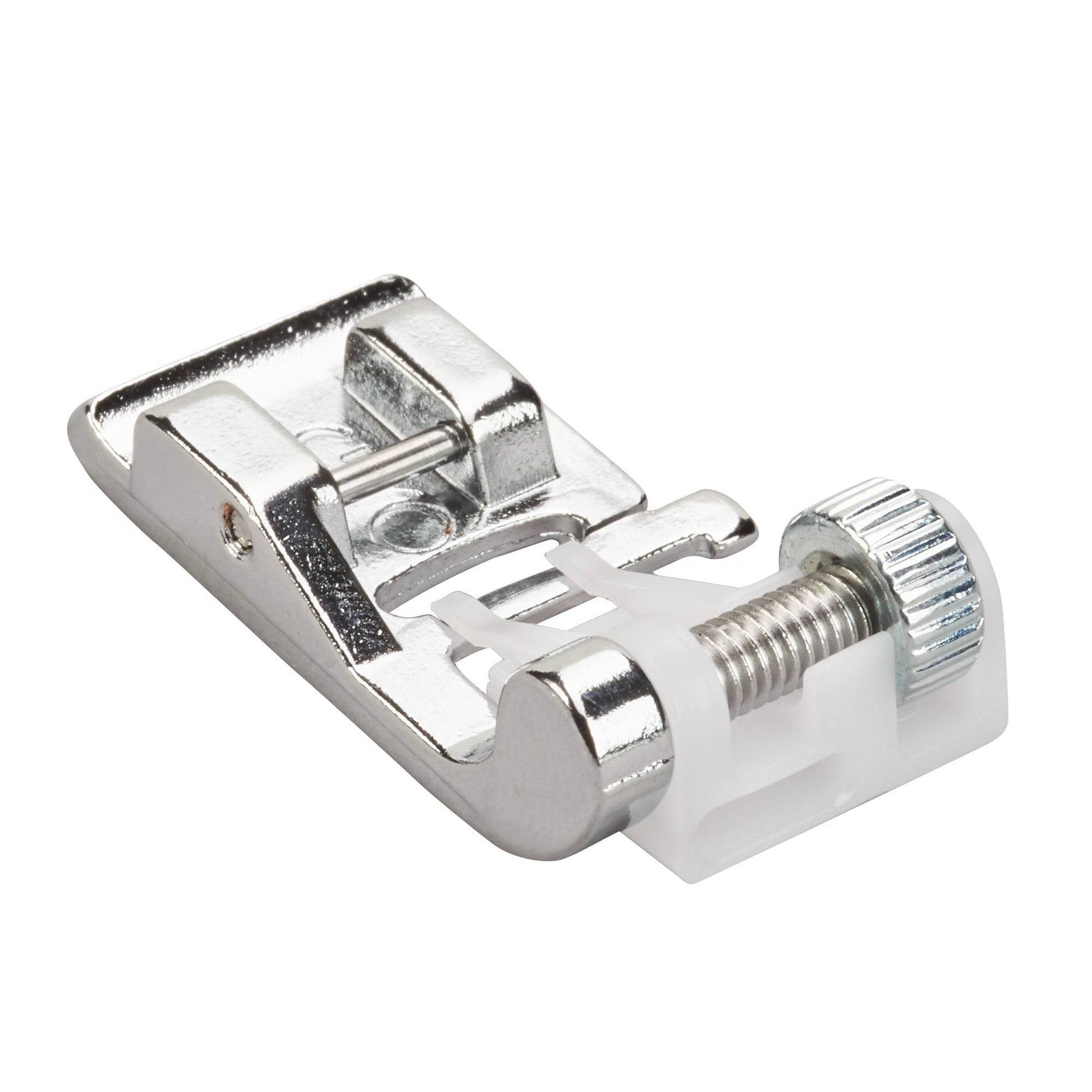 The bernette Ribbon-Couching Foot is perfect for sewing in couching sequins and satin ribbon. The adjustable guide holds the ribbon in place, preventing it from slipping as it is being sewn on.