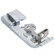 The Cording Foot is used e.g. for sewing thin cord, wire, fishline, perle yarn or fine yarn into a rolled hem. Ideal for reinforced edges, decorative ruffles and shapeable knitted bands.